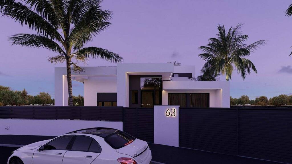 Die modernen Villen sind ebenerdig konzipiert und verfügen zusätzlich über Keller und Dachterrasse. Mit 4 Schlafzimmern, 5 Badezimmern und 1 Gäste-WC bieten die Häuser ein großzügiges Raumkonzept. Der offene Wohn- und Essbereich mit Küche führt direkt auf die Terrasse und in den privaten Garten mit Pool.