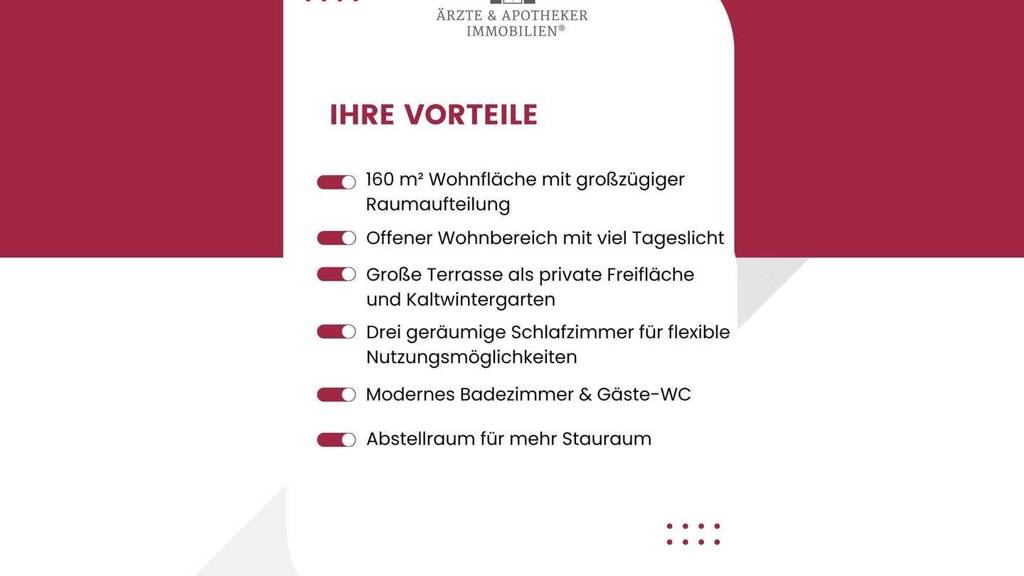 Diese exklusive Wohnung vereint eine großzügige Wohnfläche mit einer durchdachten Raumaufteilung und hochwertigen Ausstattungsdetails. Die Kombination aus lichtdurchfluteten Wohnräumen, einer einladenden Terrasse sowie Kaltwintergarten und modernem Design macht sie zu einem idealen Zuhause für Familien oder Paare, die ein gehobenes Wohngefühl in einem stilvollen Ambiente suchen.