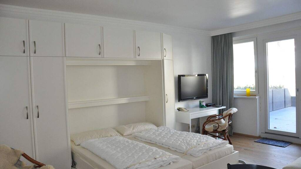 Die Wohnung selbst liegt in einem kleineren Hausteil des Hotels im 1. Obergeschoß und hat eine große Terrasse. Liftanlage.