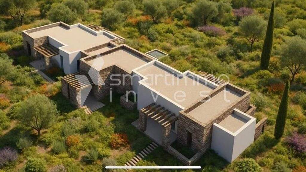 In Glyfada auf Paros steht ein außergewöhnliches Grundstück von 7.340 m² zum Verkauf, in erhöhter Lage mit atemberaubendem Panoramablick auf das Meer und die Insel Antiparos. Das Grundstück liegt außerhalb des Bebauungsplans, ist eben, eckig und über einen Landweg erreichbar. Es verfügt über eine gültige Baugenehmigung für drei unabhängige Villen mit einer gesamten Wohnfläche von 350 m². Die Lage bietet Ruhe, Privatsphäre und eine ungestörte Aussicht von 180 Grad über die Ägäis, nur etwa 1.800 Meter vom Meer entfernt. Die Genehmigung umfasst drei Häuser von 127,28 m², 73,88 m² und 145,18 m², entworfen in modernem Stil mit einer harmonischen Verbindung von Naturstein und kubischer weißer Architektur, perfekt in die Landschaft integriert. Das Anwesen kann als Gesamtprojekt oder einzeln pro Villa erworben werden - eine ideale Gelegenheit für eine private Nutzung oder eine hochwertige touristische Investition.