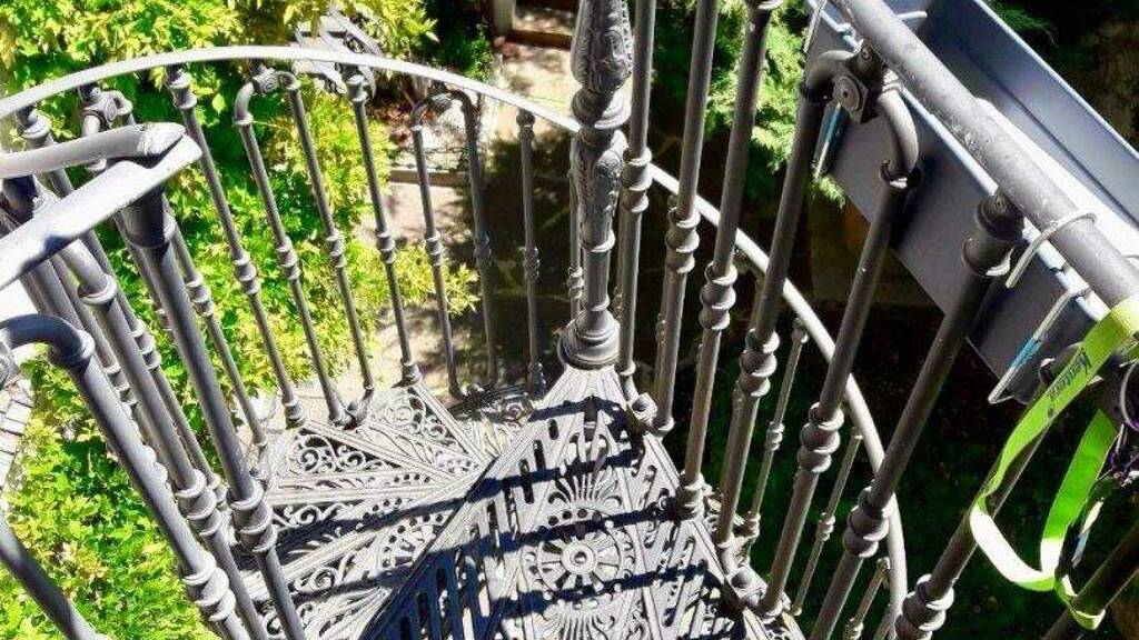 Die Einheit ist über eine private Wendeltreppe erreichbar und präsentiert sich als großzügiger, offen gestalteter Raum.