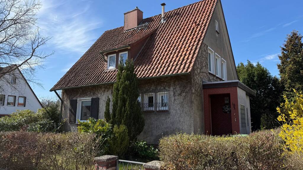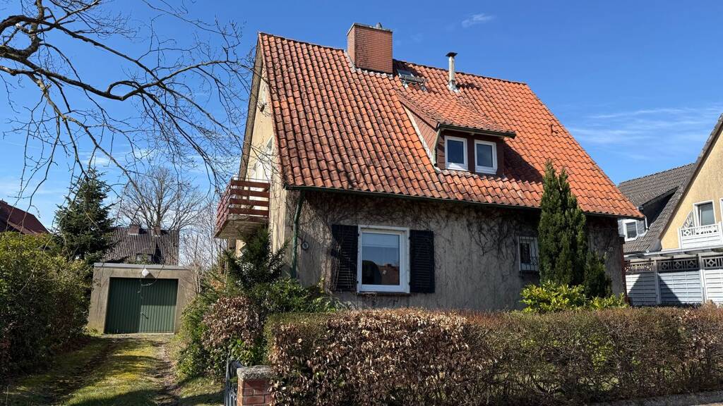 Zum Verkauf steht dieses charmante Einfamilienhaus in begehrter Wohnlage von Soltau. Das im Jahr 1954 errichtete Haus bietet rund 120 m² Wohnfläche, die sich auf insgesamt fünf Zimmer, Küche, Badezimmer und Gäste-WC verteilen, und befindet sich auf einem großzügigen Grundstück von etwa 660 m². Eine Garage sowie ein weitläufiger Garten runden das attraktive Gesamtbild ab und bieten vielfältige Nutzungsmöglichkeiten. Beim Betreten des Hauses gelangen Sie zunächst in einen Windfang, von dem aus Sie in den zentralen Flur treten. Von hier aus erschließen sich sämtliche Räume des Erdgeschosses: die Küche, ein helles Wohnzimmer mit direktem Zugang zur Terrasse und einer Verbindungstür zum angrenzenden Esszimmer, sowie ein Gäste-WC. Vom Flur aus führt zudem eine Treppe sowohl in das Dachgeschoss als auch in den vollständig unterkellerten Bereich des Hauses. Im Dachgeschoss erwarten Sie drei gut geschnittene Schlafzimmer sowie ein Badezimmer. Der Keller bietet dank Vollunterkellerung viel zusätzliche Nutzfläche, ideal für Abstellmöglichkeiten, Hobbyräume oder Haustechnik. Mit seiner soliden Bausubstanz, der familienfreundlichen Raumaufteilung und dem schönen Grundstück bietet dieses Einfamilienhaus eine hervorragende Grundlage für individuelles Wohnen in angenehmer Lage von Soltau.