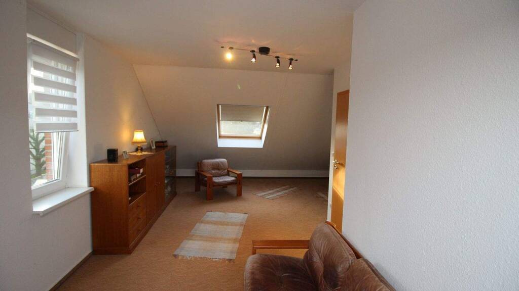 Das Dachgeschoss erweitert die Wohnnutzung um einen weiteren Raum. Dachfenster sorgen für eine freundliche Belichtung. Die Aufteilung ermöglicht eine flexible Nutzung, beispielsweise als zusätzlicher Wohn-, Arbeits- oder Hobbybereich.