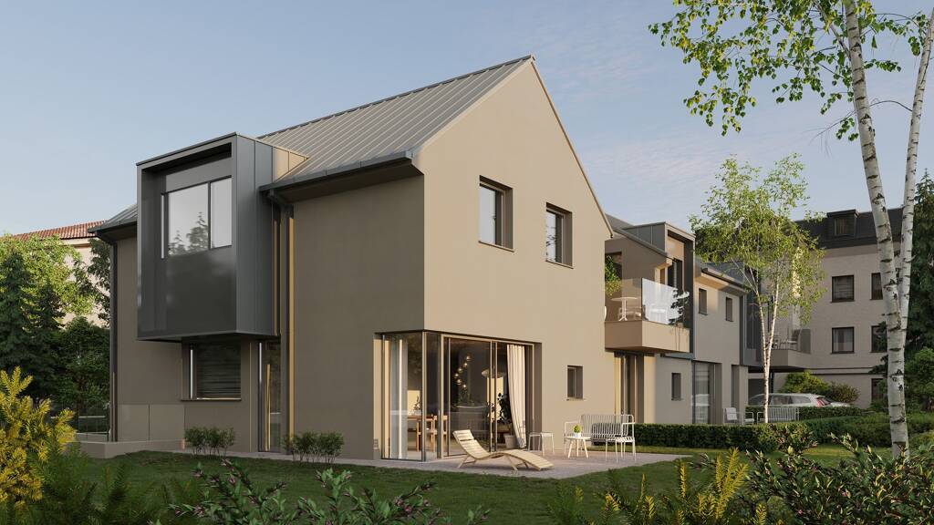 Klassisch in der Silhouette, innovativ in der Bauweise und Ausstattung präsentiert sich das Einfamilienhaus des stilvollen Ensembles "Lofts Altgnigl". Auf 165 m2 Nutzfläche residiert man auf drei Geschossen, das lichte Atriumgeschoss inbegriffen. Schon beim Betreten des mondän angelegten Wohntraumes wird klar, dass Helligkeit und Weite hier den Ton angeben. Das ca. 42 m2 große Wohnzimmer öffnet sich nach wenigen Metern Diele zu einem beeindruckenden Raumkonzept, das jede Menge Platz für Essbereich und Lounge bietet. Eine Stütze fungiert als Raumteiler und schafft Struktur, indem sie die offene Küche mit anschließender Speis zu einem eigenen Wohnareal macht. Daneben führt das breite Stiegenhaus nach oben in das Obergeschoß mit drei Schlafzimmern und Bad. Vom Erdgeschoss abwärts leitet die Treppe in einen geräumigen Atriumbereich, der durch Lichthof und Tageslichtbad nichts von seinem Wohncharakter einbüßt. Ein Hauswirtschaftsraum und zusätzliche Abstellflächen bieten in dieser Etage Raum für private Nutzung. Im Außenbereich sorgen Terrasse und der daran anschließende Garten für weiteres Wohnen unter freiem Himmel. Zum Haus gehören ein Carport-AP (EUR 24.000,00) und ein Außen-AP (12.000,00).