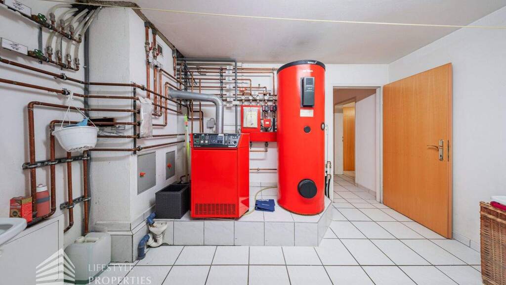 Die Villa mit einer Nutzfläche von ca. 348 m² vereint Luxus, Natur und Flexibilität auf einzigartige Weise. Eingebettet in ein ruhiges Grundstück von über ca. 1.098 m², bietet sie großzügige Räume, maßgefertigte Einbaumöbel, modernste Technik und absolute Privatsphäre, ein Zuhause, das höchsten Wohnkomfort und eleganten Lebensstil harmonisch verbindet. Das Haus unterteilt sich ein Kellergeschoss, ein Erdgeschoss und ein Dachgeschoss und bietet 7 Zimmer, 3 Bäder, 2 Küchen, eine Garage, einen Haustechnikraum, Kellerräume sowie mehrer Abstellräume. Technisch überzeugt die Villa durch eine Gasheizung kombiniert mit Fußbodenheizung und Radiatoren, einen 200-Liter-Warmwasserspeicher, hochwertige Internorm-Fenster, ergänzt durch Velux-Dachfenster, elektrische Außenrollläden an den Terrassentüren und manuelle Rollos an den übrigen Fenstern. Eine Alarmanlage schützt das gesamte Haus. Maßgefertigte Einbaumöbel nach Wunsch sind im Kaufpreis enthalten; ein Teil des weiteren hochwertigen Inventars kann ebenfalls übernommen werden. Die hochwertigen Böden aus Parkett, Fliesen und Naturstein verleihen dem Haus zeitlose Eleganz.