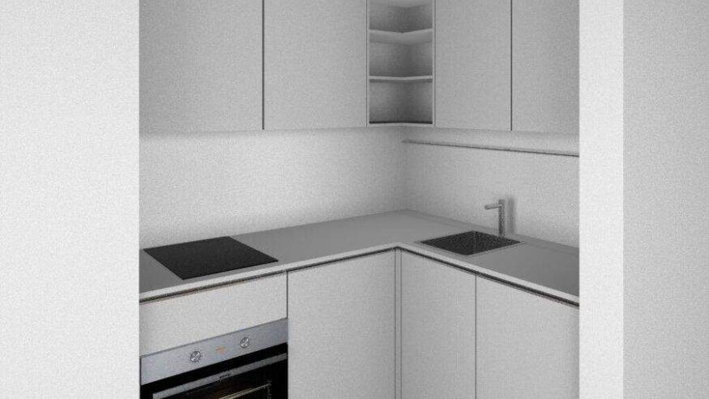 Jede Wohnung wird mit einer neuen, modernen Küche ausgestattet. Bei den derzeitigen Bildern handelt es sich um Visualisierungen, da die Küchen erst im April fertiggestellt werden.