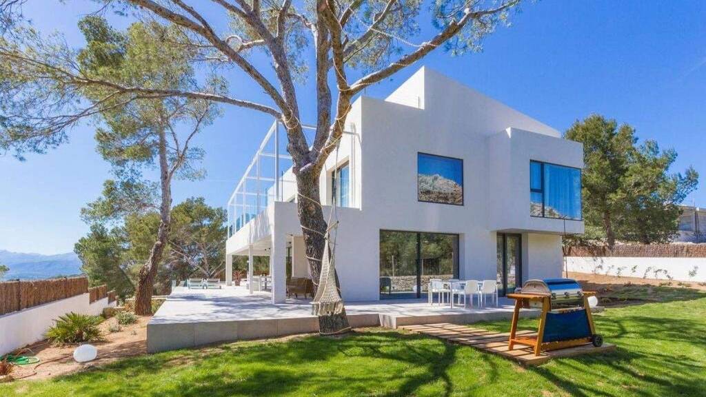 Propiedad como nuevo para su casa o por negocio.. . Verá que no se ha ahogado en gastos en la construcción y el estilo de esta villa. Con 4 dormitorios y 4 baños, tiene capacidad para 8 personas y está ubicado en una zona próspera y pintoresca conocida como el cielo de Bonaire.. . Bonaire es una hermosa zona de costa virgen a solo unos minutos en coche del casco antiguo de Alcudia. Tiene un pequeño puerto deportivo, dos playas de arena, varios bares, restaurantes, escuela de buceo y minimarkt.. . La propiedad está ubicada en una posición elevada con vistas a la maravillosa tierra del cinturón verde a la bahía de Pollença.. . Hay terrazas ajardinadas. La piscina de borde infinito tiene una cascada y un solárium con suelo de baldosas y terraza amueblado con tumbonas y un diván balinés.. . El comedor cubierto está cerca de la piscina con un comedor adicional junto a la barbacoa.. . El salón-comedor es muy espacioso y tiene no menos de 3 paredes de vidrio de piso a techo que se abren a la terraza, jardín y piscina.. . La cocina es fabulosa y tiene nada menos que tres hornos. A esta cocina no le falta de nada con su gran isla, dos lavabos y zona de comedor. La habitación puede estar abierta a la sala de estar o mantenerse separada con solo cerrar la gran puerta corrediza.. . El dormitorio uno tiene una cama king size y vistas de doble aspecto del campo y las montañas circundantes. Hay un espectacular baño independiente y ducha de mármol abierta con WC privado. Esta suite tiene acceso a una terraza amueblada.. . También hay un espacio de lectura y relajación con vistas al mar en la primera planta.. . El segundo dormitorio tiene una cama king size con acceso a una terraza cubierta y baño en suite.. . El tercer dormitorio tiene una cama king size con baño en suite y vistas a la naturaleza.. . El cuarto dormitorio está equipado con dos camas individuales..