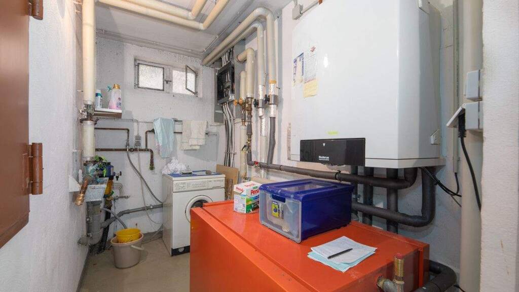 Im Untergeschoss befinden sich neben einem Kellerraum, dem Heizraum und dem alten Tankraum zusätzlich rund 56 m² Wohnfläche, verteilt auf zwei Zimmer, Flur und ein zweites Tageslicht-Badezimmer mit Badewanne. Die Terrasse ist über beide Zimmer begehbar.