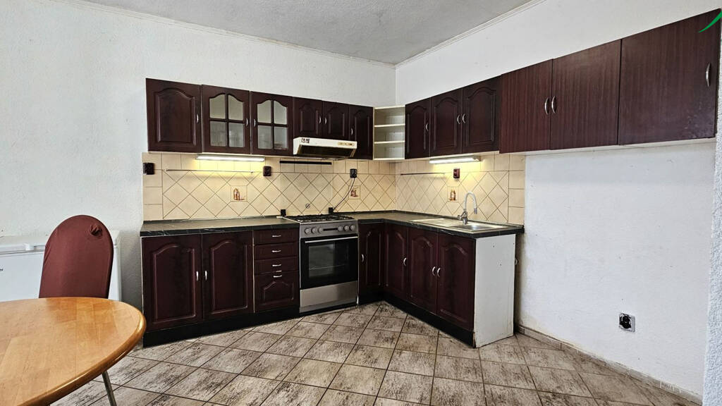 Die Hauptaufteilung des Hauses ist 3-Zimmer-Küche mit Badezimmer und WC. Zusätzlich gibt es einen geräumigen Unterstand, der auch als Terrasse für das Obergeschoss genutzt werden kann, sowie einen kleinen Garten mit einer Fläche von 437 m².