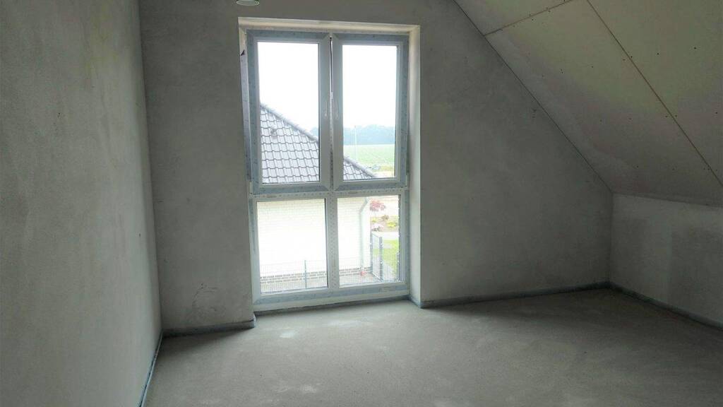 Der Neubau besticht durch moderne Architektur, hochwertige Ausstattung und zahlreiche durchdachte Details. Rund 95 % der Fenster werden bodentief geplant, sodass alle Räume von maximalem Tageslicht profitieren. Im Eingangsbereich empfängt Sie eine elegante Betonkerntreppe mit Fliesenbelag und stilvollem Holzhandlauf, die die Diele zu einem echten Blickfang macht.