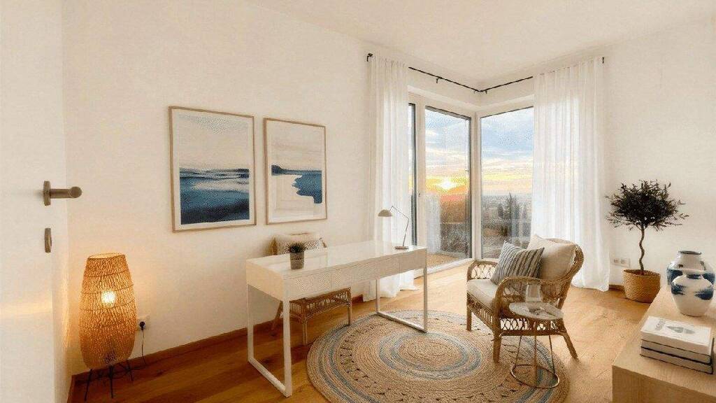 So versorgt eine zentrale Pelletsanlage die Fußbodenheizung sowie die Warmwasseraufbereitung und ein elektrisch betriebener Handtuchheizkörper im Bad liefert zusätzliche Wärme. Für die warme Jahreszeit wird in einzelnen Wohneinheiten die Vorbereitung zur Klimatisierung bzw. eine Vollklimatisierung angeboten.