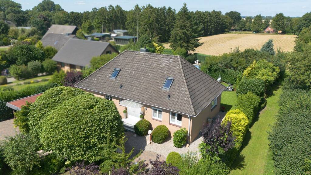 Dieses modernisierte Einfamilienhaus aus dem Jahr 1976 überzeugt durch seine Großzügigkeit, die besondere Lage sowie zahlreiche Ausstattungsdetails. Auf einem weitläufigen Grundstück von ca. 1.508 m² – zzgl. einer eigenen Hauskoppel von ca. 12.253 m² mit straßenseitigem Zugang – bietet die Immobilie ideale Bedingungen für Menschen mit Platzbedarf, Tierhaltung oder dem Wunsch nach naturnahem Wohnen in Feldrandlage. Die Wohnfläche von ca. 173 m² verteilt sich auf zwei Ebenen. Im Erdgeschoss befinden sich ein heller Wohn- und Essbereich mit Zugang zur Terrasse, drei weitere Zimmer zur individuellen Nutzung, eine Einbauküche mit Durchreiche zum Esszimmer, ein Gäste-WC sowie ein modernes Duschbad. Ein separater Treppenaufgang führt in ein hochwertig ausgebautes Studio im Dachgeschoss – ideal als Rückzugsort, Atelier oder Gästebereich. Ein Wannenbad mit angrenzendem Ruhebereich ergänzt das Raumangebot. Das Dachgeschoss bietet zudem die Möglichkeit, ohne großen Aufwand eine Einliegerwohnung zu schaffen. Der Vollkeller bietet wohnlich ausgebaute Flächen, die sich flexibel zum Arbeiten oder Wohnen nutzen lassen. Zusätzlich stehen hier ein Fitnessraum, eine Sauna sowie weitere Abstellmöglichkeiten zur Verfügung. Der Garten ist blickgeschützt angelegt und mit einem Außenpool samt mobiler Überdachung, Poolhaus mit Pooltechnik und einem überdachten Loungebereich mit Kaminofen und großer Holzterrasse ausgestattet – perfekt für entspannte Stunden im Freien. Ein Carport mit abschließbarem Abstellraum sowie weitere Außenstellplätze runden das Angebot ab. Technisch überzeugt das Haus unter anderem mit einer Gasbrennwerttherme aus 2022, 3-fach verglasten Fenstern, Glasfaseranschluss und Internetzugang auf allen Etagen. Ein ideales Zuhause für alle, die naturnahes Leben und großzügiges Wohnen und Arbeiten harmonisch verbinden möchten. Wir freuen uns auf Ihre Anfragen!