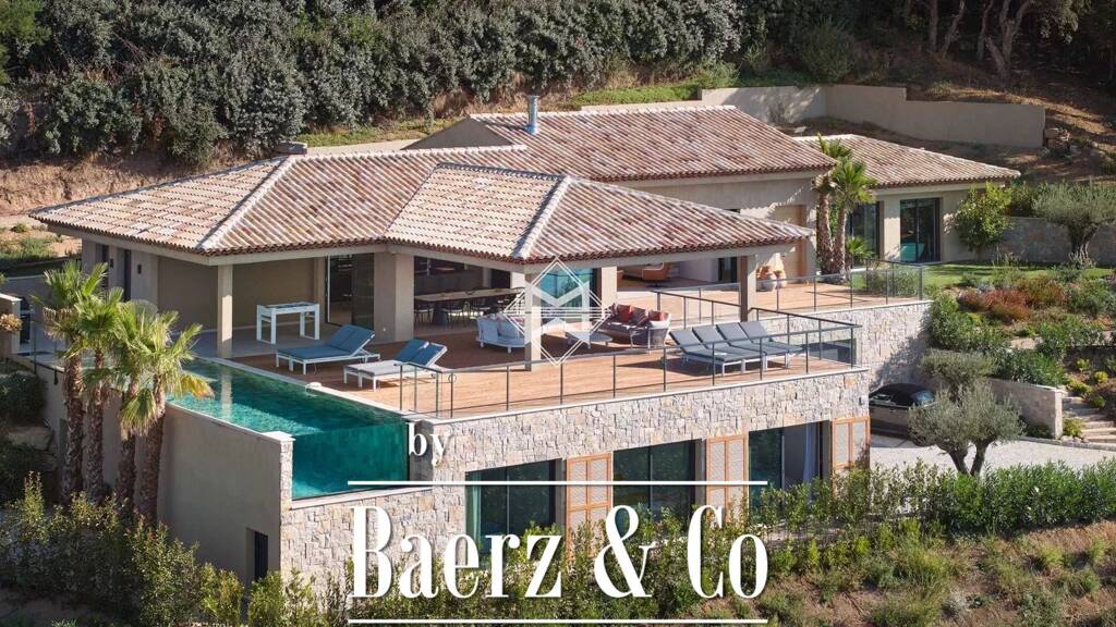 located in a residential area in the town of grimaud, this modern property offers a panoramic view of the sea.