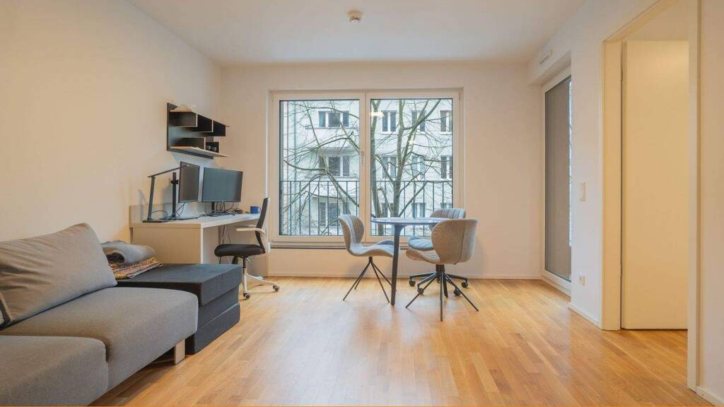 Diese hochwertig ausgestattete 2-Zimmer-Wohnung befindet sich im 2. Obergeschoss eines modernen Wohnhauses aus dem Jahr 2018 und überzeugt durch eine besonders attraktive Lage direkt an der Spree in Berlin-Oberschöneweide. Das Wasser verläuft unmittelbar entlang des Grundstücks und bietet ideale Möglichkeiten für Spaziergänge, sportliche Aktivitäten oder entspannte Stunden im Freien. Gleichzeitig genießen Sie hier eine angenehm ruhige Wohnatmosphäre bei guter Anbindung an die Berliner Innenstadt.