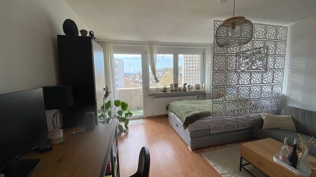 Baujahr 1969 modernisiert 2012 Wfl ca. 33 m² 1 Zimmer 7. OG Bad (ohne Fenster) Küchenzeile (Einbauküche) incl. West-Balkon Ölzentralheizung Kunststofffenster