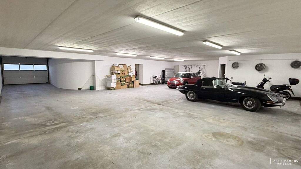 Ein herausragendes Merkmal dieser Liegenschaft ist die außergewöhnlich großzügige Garage mit einer Fläche von rund 61,7 m², die Platz für bis zu sechs Fahrzeuge bietet.