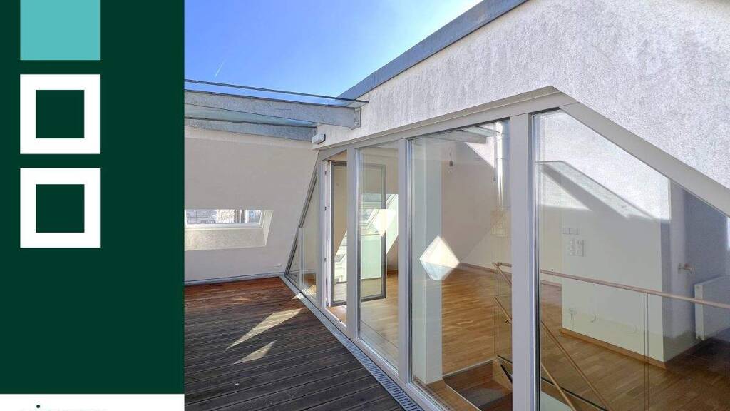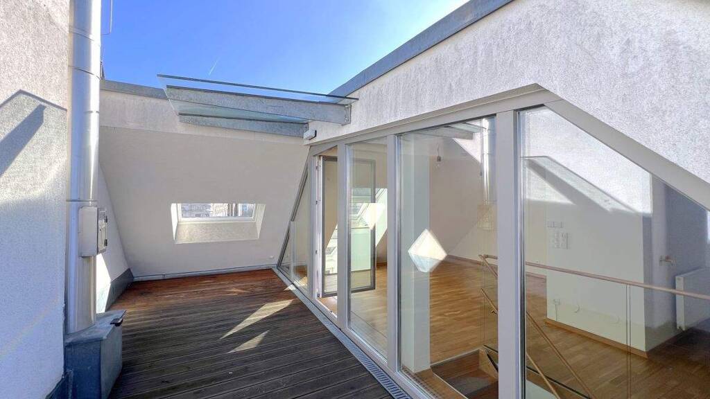 Diese Maisonette-Wohnung eignet sich optimal für Pärchen oder Singles mit zusätzlichem Homeoffice-Bedarf. Auf der oben gelegenen Galerie der Maisonette ist ein Zusatzraum für z.B. Office mit Ausgang zur großen Sonnenterrasse vorhanden. Die Wohnung befindet sich im DG-Ausbau aus dem Jahr 2014 in einem schön sanierten Altbauhaus. Urbanes Wohnen mit Rathausblick sowie modernem Standard inkl. Klimatisierung, Holz-Glas-Innenstiege und Holzböden.