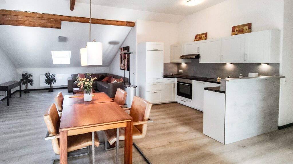 Jede Einheit verfügt über eine moderne Einbauküche sowie ein Badezimmer mit Fenster und Dusche. Die Beheizung erfolgt zentral über eine Öl-Zentralheizung mit Fußbodenheizung. Das Haus ist vollständig möbliert und sofort beziehbar. Die Kellerfläche beträgt ca. 48 m², die zusätzliche Lagerfläche ca. 27 m². Insgesamt stehen 9 KFZ-Stellplätze zur Verfügung.