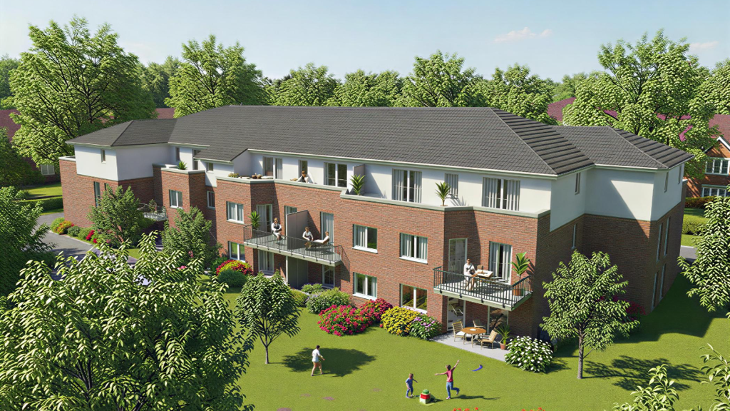 Mit SOOLA entsteht in Reppenstedt ein modernes Mehrfamilienhaus, das Architektur, Komfort und Nachhaltigkeit harmonisch vereint. Das Gebäude umfasst 32 attraktive Wohneinheiten, die mit ihrer klaren Formensprache und hochwertigen Materialwahl einen stilvollen Akzent am westlichen Stadtrand Lüneburgs setzen.