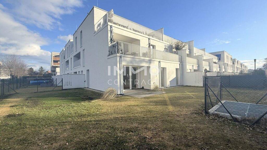 Der offen gestaltete Wohn- und Essbereich bildet das Herzstück der Wohnung. Von hier aus gelangen Sie direkt auf die Loggia und weiter in den weitläufigen Garten - perfekt für entspannte Stunden, gesellige Abende oder einfach, um die Natur zu genießen.