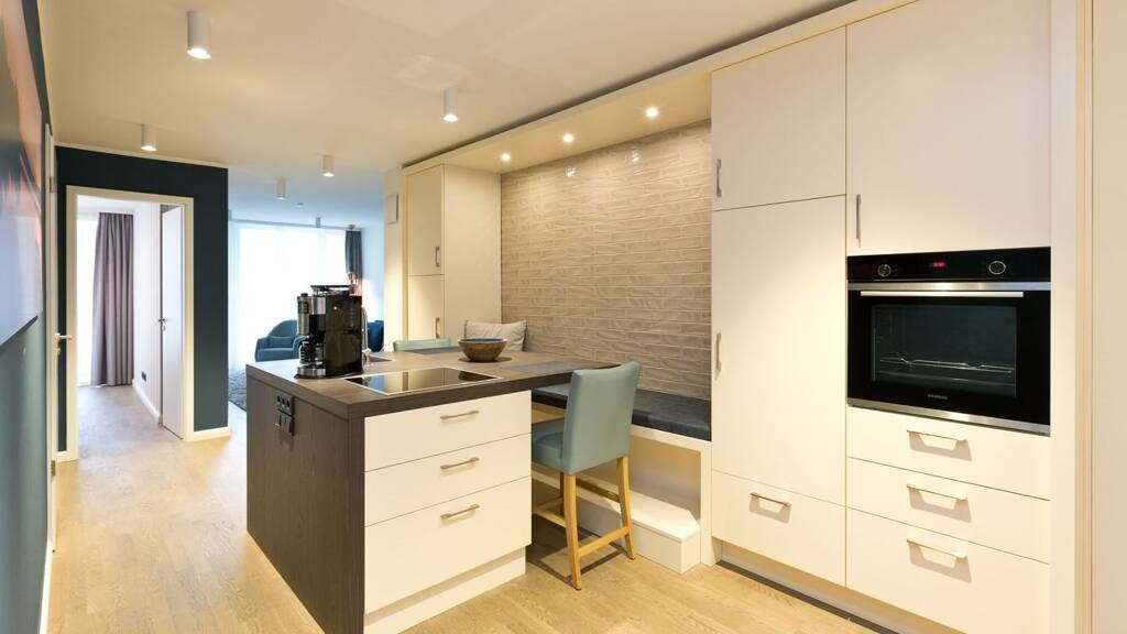 Das Appartement besticht nicht nur durch seine Lage: Auch die für Hotelgäste kostenfreie Nutzung der Wellnessoase inklusive 2 Saunen, Ruheraum mit Sternenhimmel und beheiztem Außenpool gehören zu den Highlights. Zum attraktiven Angebotspreis von 289.000 Euro sind weitere 24.900 Euro für ein hochwertiges Möbelpaket inklusive Markengeräte hinzuzurechnen.