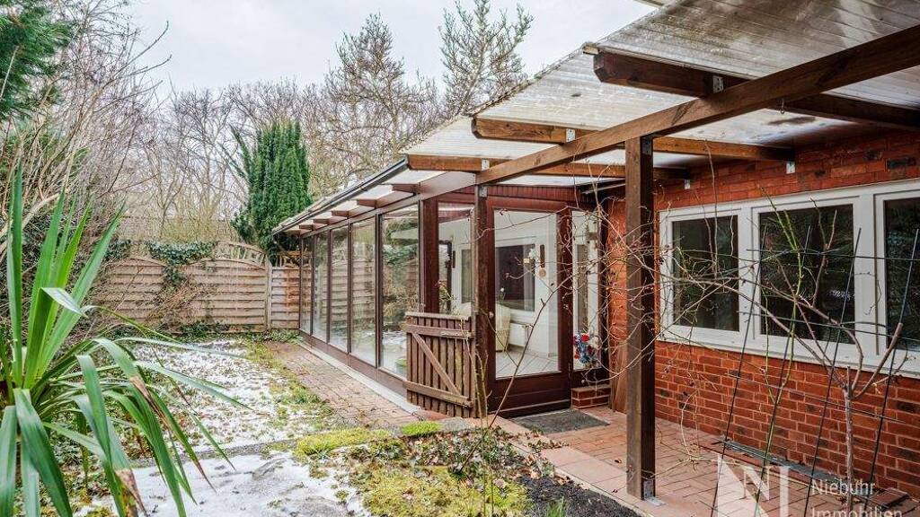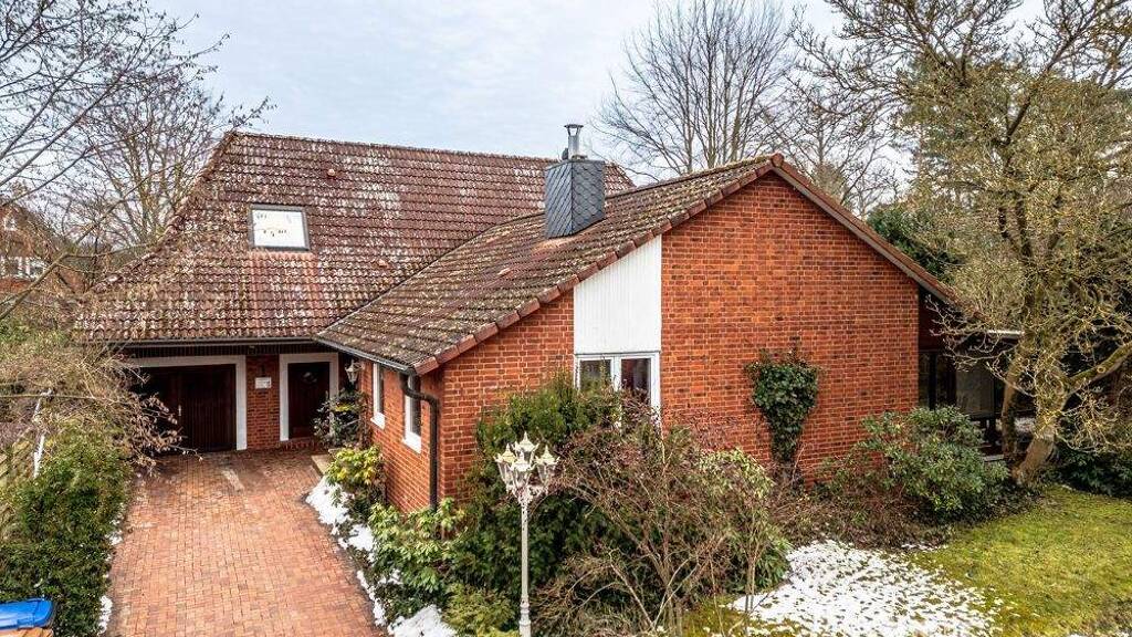 Das attraktive Einfamilienhaus mit rotem Klinker und roten Dachpfannen wurde in den 60er Jahren erbaut und im Jahr 1998 durch einen großzügigen Anbau erweitert. Das gesamte Haus inklusive Anbau ist vollständig unterkellert und bietet ideale Voraussetzungen für zwei Generationen oder eine große Familie. Über zwei Stufen gelangen Sie zum Hauseingang und betreten einen einladenden Flur. Von hier aus erreichen Sie die kompakte und funktionale Küche mit roter Einbauküche, welche jedem Hobbykoch Freude bereitet. Direkt anschließend eröffnet sich das lichtdurchflutete Esszimmer mit fließendem Übergang in das großzügige Wohnzimmer, in dem der Kamin für eine gemütliche Atmosphäre sorgt und zum entspannten Beisammensein einlädt. Von dort aus gelangen Sie in den charmanten Wintergarten, welcher eine harmonische Verbindung zum Garten schafft und über die Terrassenüberdachung ins Grüne führt. Auf dieser Ebene befinden sich außerdem das baujahrtypische Vollbad sowie der Zugang zum Keller. Ein großzügiger Raum mit vielfältigen Gestaltungsmöglichkeiten verbindet das Haupthaus mit dem Anbau. Von hier aus gelangen Sie in einen geräumigen Flur mit schöner Buchenholztreppe, die in das Dachgeschoss führt. Im Erdgeschoss des Anbaus erwartet Sie ein besonders großes Schlafzimmer mit direktem Zugang zu der Terrasse und in den Garten. Das angrenzende Tageslichtbad en Suite ist ebenfalls großzügig geschnitten und mit Dusche sowie Badewanne ausgestattet. Das Dachgeschoss überzeugt mit einem hellen Kinderzimmer und angrenzendem Spielzimmer. Gegenüber befinden sich ein Arbeitszimmer sowie ein separates WC mit Dusche. Der Keller bietet mehrere Abstellräume, den Heizungsraum sowie einen individuell nutzbaren Hobbyraum mit angrenzendem WC. Ein über-/ umbauter Kellerausgang ermöglicht einen zusätzlichen Zugang in den Garten oder zum Eingangsbereich mit Auffahrt zur Garage. Die gemauerte Garage und die gepflasterte Auffahrt runden das Gesamtbild dieser besonderen Immobilie stimmig ab.