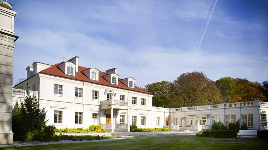 Ein klassizistisches Herrenhaus aus der Mitte des 19. Jahrhunderts, das von vier großen Säulen getragen wurde, wurde von Wlodzimierz Radolinski errichtet und anschließend von Witold Garczynski um ein südwestliches Nebengebäude und einen vorderen Portikus mit einer Nutzfläche von 2000 m2 erweitert. und ein 10 Hektar großer Park, der so groß ist wie der Vorkriegspark. Im Inneren des Herrenhauses befinden sich perfekt restaurierte Innenräume aus der Mitte des 19. Jahrhunderts. Der einzigartige Stuck, die Auswahl an Gemälden, Lampen, Kronleuchtern und antiken Möbeln ermöglichen es Ihnen, von der Blütezeit des Herrenhauses in die historischen Innenräume zu ziehen.