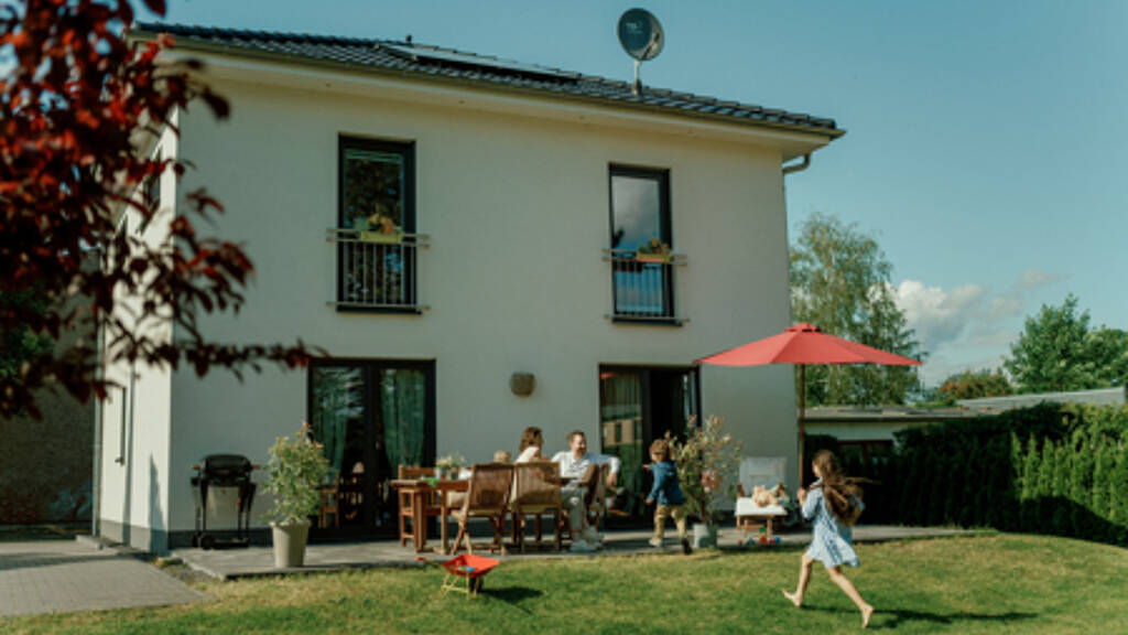 Die kubische Form ist der Klassiker im Stadthausdesign und prägt auch das Aussehen unseres Stadthauses. Im Inneren setzt sich der urbane Stil fort: der großzügige Wohn- und Essbereich erstreckt sich über die gesamte Hausbreite und ist das Herzstück des Hauses. Große Fenster lassen viel Tageslicht hinein und führen gleich hinaus zu Ihrem Wohnzimmer im Grünen - der Terrasse.