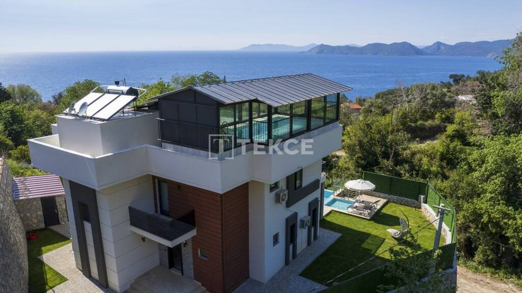Freistehende Villa mit unverbautem Meerblick in Fethiye Faralya