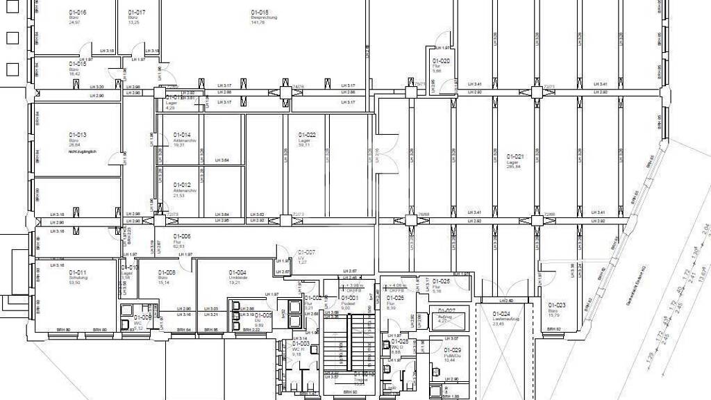 Das 4geschossige frühere Fabrikgebäude mit einer Gesamtfläche von ca. 4.400 m² kann vielfältig genutzt werden. Über einen zentralen Eingangsbereich werden die Geschosse über eine Aufzugsanlage erschlossen. Zusätzlich ist ein Lastenaufzug vorhanden. Die Mietbereiche können nach dem Raumprofil des Nutzers ausgebaut und ausgestattet werden. Insgesamt stehen im Gebäude folgende Flächen zur Anmietung.