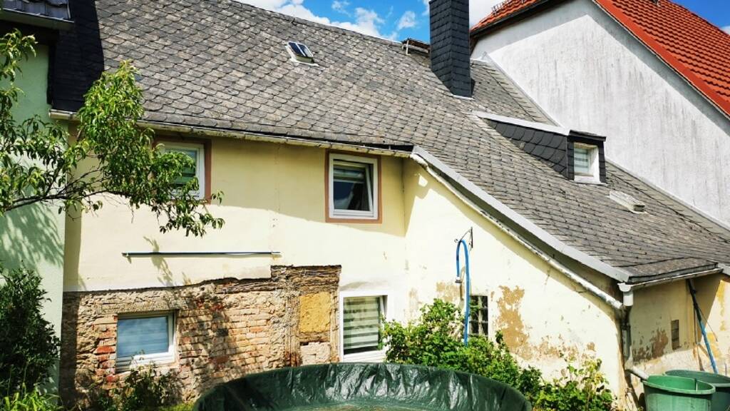 Die benachbarten Häuser sind schön saniert und bewohnt. Ein kleiner Garten mit Pool ist vorhanden. Das Gebäude stehen nicht unter Denkmalschutz.
