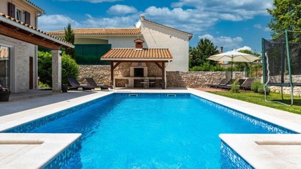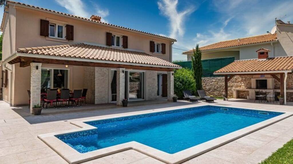 Energieausweis: ZU DIESER IMMOBILIE LIEGT DERZEIT NOCH KEIN ENERGIEAUSWEIS VOR. IN VORBEREITUNG. Die natürliche Schönheit der unberührten Lage, umgeben von Weinbergen und Olivenhainen, nicht weit von den bezaubernden Buchten von Rabac und den imposanten Ucka-Bergen, bildet den Hintergrund dieser wunderschönen SmartHome-Villa mit einer Gesamtwohnfläche von 143 Quadratmetern.Beim Betreten der Villa gelangen Sie in ein Treppenhaus, in dem sich auf derselben Ebene 2 große geräumige Schlafzimmer mit eigenem Bad und ein Kinderzimmer mit zwei Betten und einem separaten Bad direkt gegenüber dem Eingang zum Zimmer befinden.Das Hinabsteigen der schönen Steintreppe führt zu einem wunderschönen offenen Wohnzimmer und einer Küche im Open Space Stil mit hochwertiger Markenküche, erstklassigen Markeneinbaugeräten und schicken Möbeln von hoher Qualität. Direkt vom Wohnzimmer aus haben Sie Zugang zu Ihrer kleinen Oase mit einem beheizten Pool von 32 Quadratmetern mit römischer Treppe. Auf derselben Ebene befindet sich ein weiteres geräumiges Schlafzimmer mit eigenem Bad und einem separaten Ausgang zum Pool. Alle Schlafzimmer und das Wohnzimmer sind mit hochwertigen Klimaanlagen ausgestattet, die über leistungsstarke externe Einheiten von Mitsubishi und intelligente Steuerung über eine Anwendung funktionieren. Während heißer Sommertage, wenn der Energieverbrauch in den meisten Häusern in der Regel höher ist, bietet diese Villa eine Lösung. Das ökologische Smart-Control-System ist darauf ausgelegt, überschüssige Wärme aus der Luft, die durch das Innere strömt, zu sammeln und sie als Heizung Interesse? Bitte senden Sie uns ein VOLLSTÄNDIG augefülltes Kontaktformular zu, Sie erhalten dann umgehend ein ausführliches Exposé. ACHTUNG MAKLER: Wir freuen uns auf eine Zusammenarbeit. Alle Angaben stammen vom Verkäufer der Immobilie. Ohne Gewähr! blueHOMES AG ...die schönsten Häuser Europas...