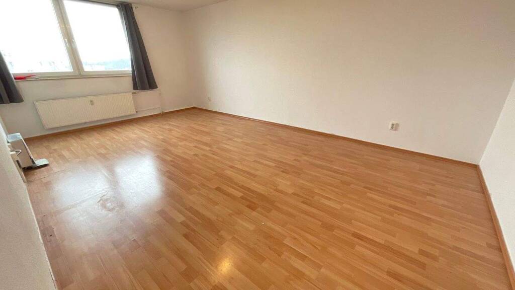 Das Zimmer ist bereits mit einem Laminatboden ausgestattet. Die Wände sind tapeziert und müssten lediglich nochmal neu vom
