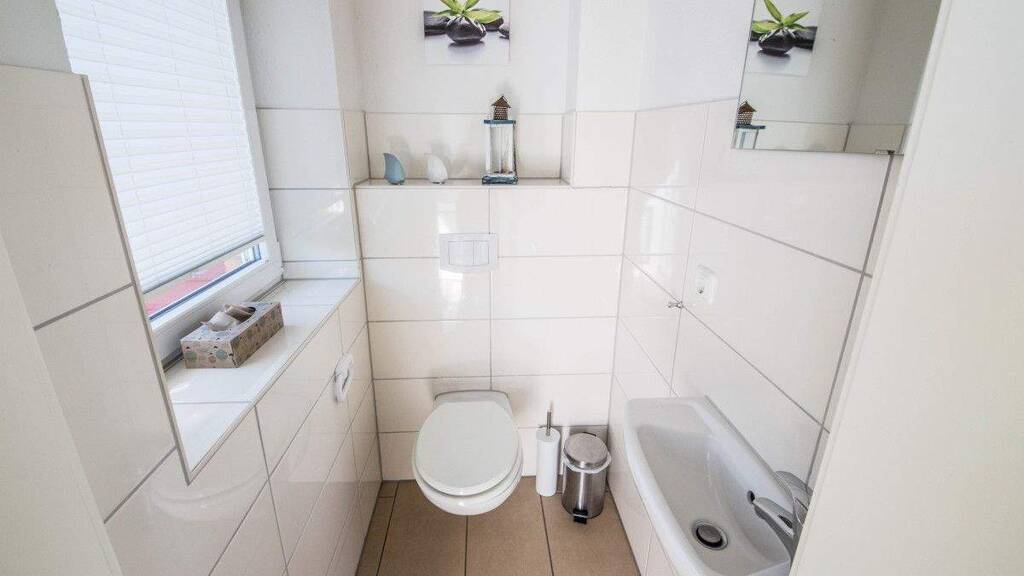 Mit einem separaten WC und einem praktischen Hauswirtschaftsraum bietet dieses Haus alles, was Sie brauchen. Die Terrasse lädt zum Entspannen ein, während Sie bei einem Grillabend den Blick auf die Schlei genießen. Neben dem Haus befindet sich ein geräumiger Abstellraum mit ausreichend Lagerfläche. Außerdem befinden sich vor dem Haus zwei Außenstellplätze.