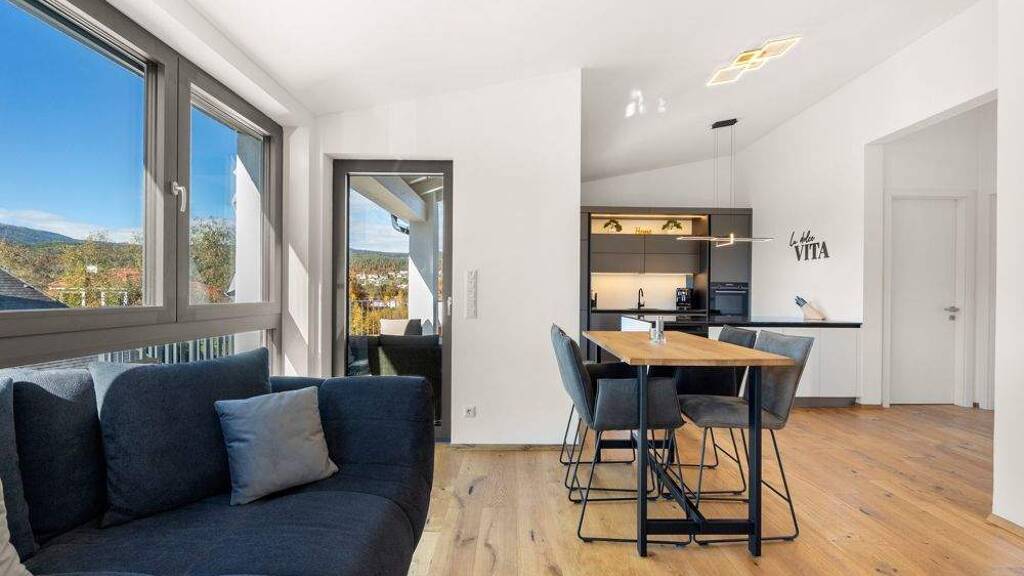 Lage/Beschreibung: In zentrumsnaher Lage von Velden am Wörthersee befindet sich diese charmante Dachgeschosswohnung mit rund 66 m² Wohnfläche. Sämtliche Infrastruktur für den täglichen Bedarf ist innerhalb von wenigen Gehminuten erreichbar. Als einzige Einheit auf dieser Etage gelegen, bietet die Wohnung besonders viel Privatsphäre. Der Grundriss ist optimal gestaltet: zwei gemütliche Schlafzimmer und ein großzügiger Wohn- und Essbereich schaffen ein angenehmes Raumgefühl. Der westseitig ausgerichtete Balkon mit ca. 13 m² lädt zum Entspannen ein und eröffnet einen wunderschönen, freien Blick auf die Gerlitzen und die umliegende Natur. Ein Carport, ein zusätzlicher Freistellplatz sowie ein Kellerabteil sind im Angebot inkludiert. Die Wohnung wurde 2023 erbaut und präsentiert sich in einem neuwertigen, modernen Zustand.