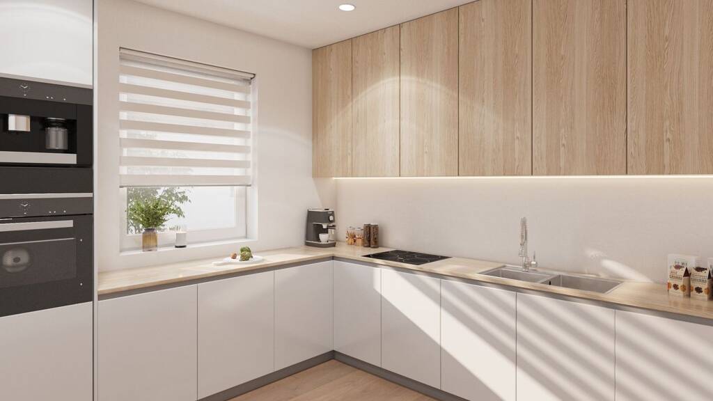 Innen überzeugt jede Wohnung mit: . Hochwertigen Vinyl- oder Feinsteinzeugböden (Auswahl nach Muster) . Modernen Bädern mit bodengleichen Duschen, Marken-Sanitär von Hansgrohe & Ideal Standard . Zeitloser, klarer Architektur & lichtdurchfl uteten Räumen . Stilvollen Details wie Granittreppen, edlen Innentüren und dezenten Sockelleisten