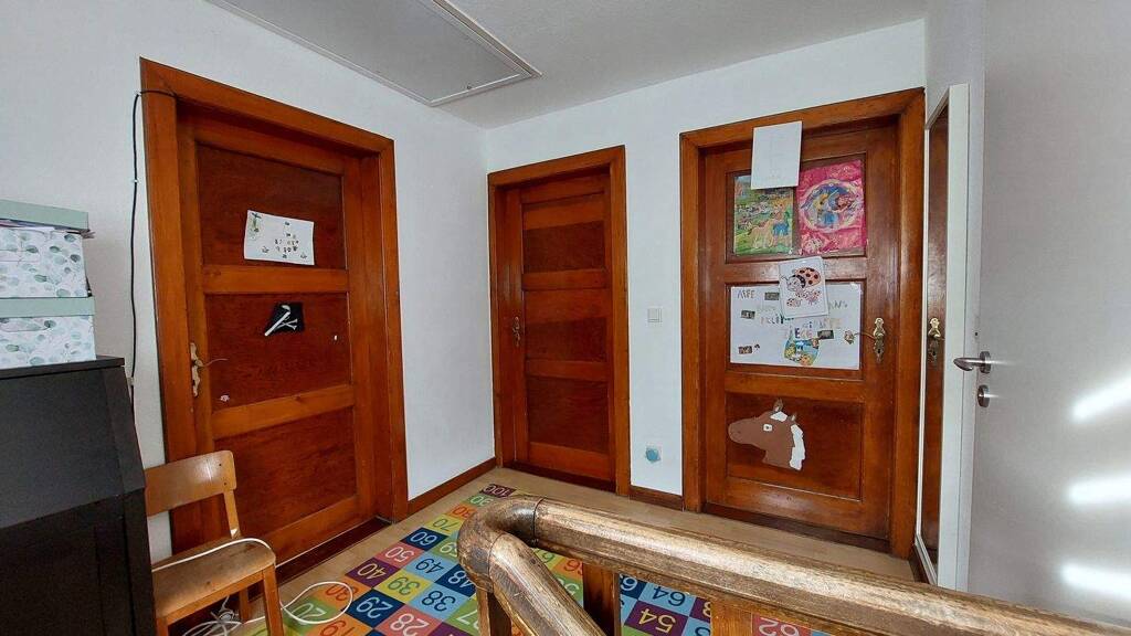 Dieses kleine Einfamilienhaus mit dem großen Garten eignet sich perfekt für die kleine Familie. Über den schönen und sehr praktischen Windfang gelangen Sie in Ihre Diele. Von hier geht es sowohl in den Wohn-/Essbereich mit dem schönen Kaminofen, als auch in die helle Küche mit der Einbauküche und dem kleinen Essplatz. Dazu haben Sie im Erdgeschoss noch ein Gäste-WC mit Fenster. Im Obergeschoss erwarten Sie dann 3 Zimmer, ein Tageslicht-Badezimmer mit Dusch-Badewanne und ein heller Flur mit Tageslicht. Das Highlight des Hauses ist sicherlich der schöne, große und sonnige Garten mit Obstbaumbestand und der tollen, kleinen Scheune. Hier haben Ihre Kinder viel Platz zum Spielen oder Sie gehen in der Scheune Ihrem Hobby nach. Ihre PKW's parken in der Einfahrt vor dem Haus. Das Haus wurde laufend modernisiert, z.B.: komplette Elektrik, Bad & Gäste-WC, das Dach wurde gedeckt und gedämmt, alle Fenster und Klappläden erneuert, Außenanstrich, Gasbrennwert-Heizkessel, alle Heizkörper, neue Einbauküche, Kellersanierung, etc. Aktuell ist das noch Haus vermietet. Anschauen lohnt sich auf jeden Fall!