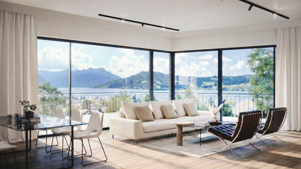 Eingebettet zwischen dem türkisblauen Attersee und der majestätischen Kulisse des Höllengebirges entstehen in Steinbach drei außergewöhnliche Neubauvillen, die Naturgenuss und modernen Wohnkomfort auf eindrucksvolle Weise vereinen - herrlicher Seeblick inklusive.
