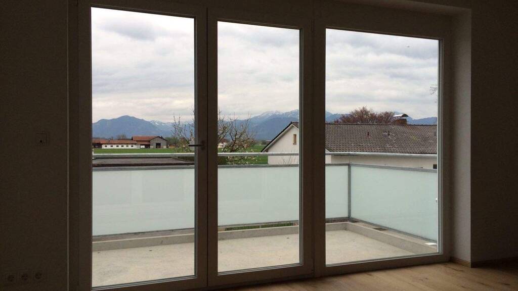 Die Wohnung überzeugt durch einen hellen, offenen Grundriss und großzügige Fensterflächen, die den Räumen ein angenehmes Wohngefühl verleihen. Der Mittelpunkt ist der großzügige Wohn- und Essbereich, der Zugang zu einem sonnigen Balkon mit blickgeschütztem Glasgeländer bietet – ideal für entspannte Stunden im Freien. Besonderes Highlight ist hier natürlich der freie Blick auf die Inntaler Bergkette.