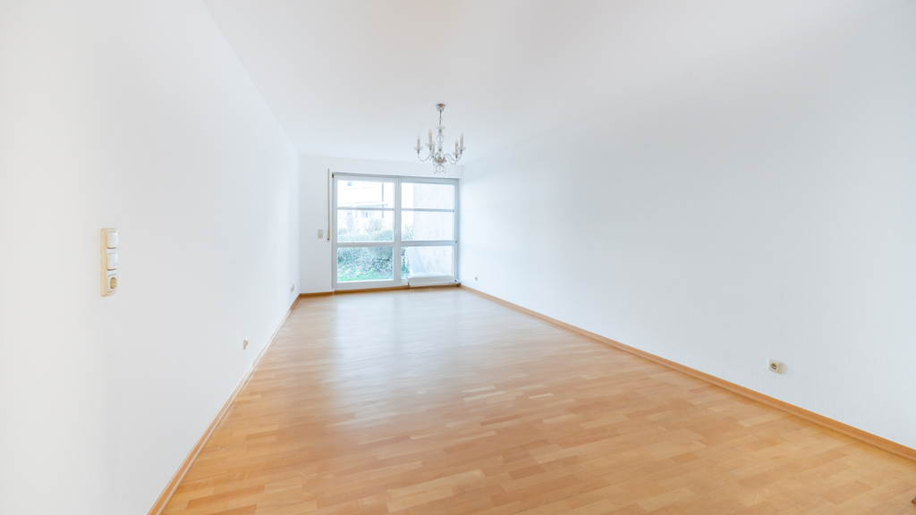 Über den Eingangsbereich gelangt man in den Flur, von dem aus alle Räume der Wohnung erreichbar sind. Der Wohnbereich bildet den Mittelpunkt der Wohnung und bietet ausreichend Platz für eine gemütliche Wohnlandschaft sowie einen Essbereich. Von hier aus besteht ein direkter Zugang zur Terrasse und in den Garten, wodurch ein offenes und wohnliches Raumgefühl entsteht.