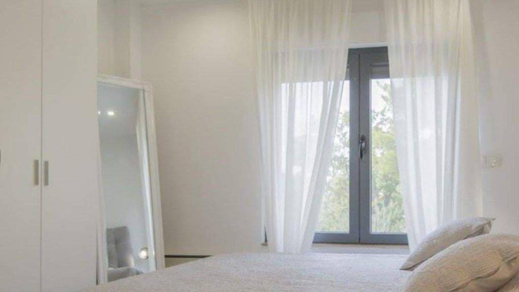 Im Erdgeschoss finden wir das erste große Schlafzimmer von insgesamt vier in der Villa, mit eigenem Bad und Kleiderschrank. Die Treppe führt vom Wohnzimmer im Erdgeschoss in die erste Etage, wo der Hauptflur als Eingang zu den restlichen 3 Schlafzimmern dient, von denen jedes über ein eigenes Bad und Kleiderschränke verfügt. Im ersten Stock gibt es eine große Terrasse, die wie im Erdgeschoss von allen Schlafzimmern durch Glaswände zugänglich ist, die viel Tageslicht hereinlassen.