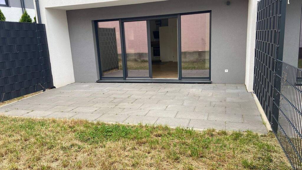 Durch den ebenerdigen Zugang können Sie Ihre Wocheneinkäufe entspannt in die bereits vorhandene Einbauküche mit hochwertigen Marken-Geräte tragen. Im Mietpreis sind zwei Außenstellplätze enthalten.