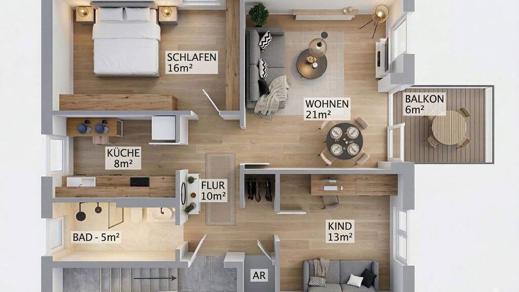 Auf rund 76 m² entsteht ein Wohngefühl, das man in dieser Form in Schwandorf nur selten findet: helle Räume, klare Linien und eine Ausstattung, die sofort überzeugt.