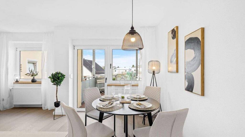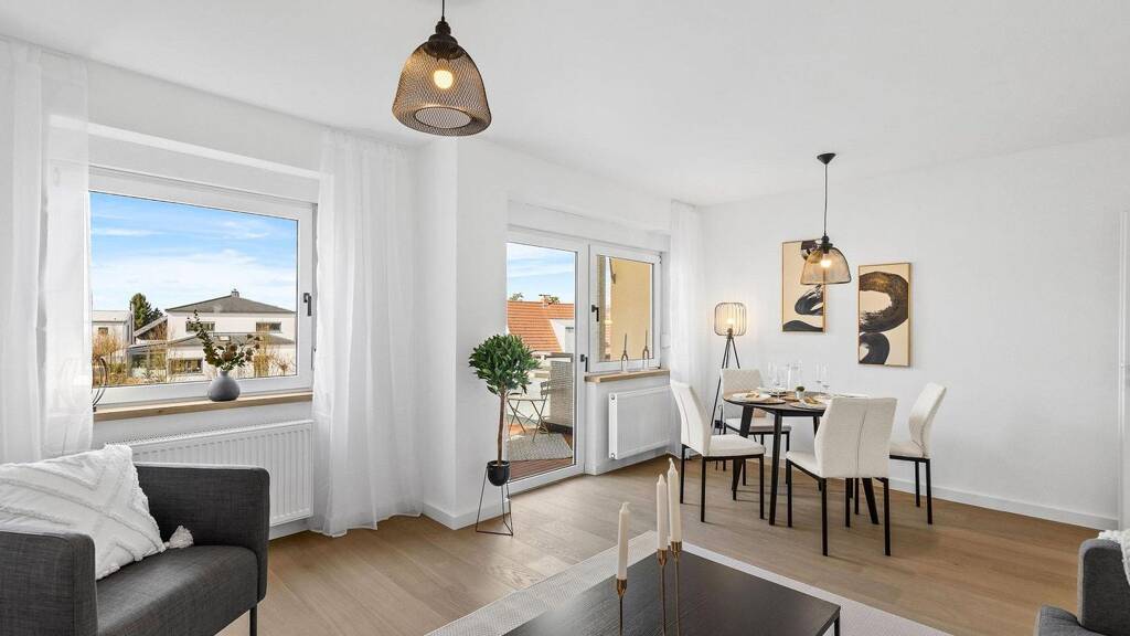 Der großzügige Wohn- und Essbereich bildet das Herzstück der Wohnung und öffnet sich zum sonnigen Balkon - ein idealer Ort, um den Tag entspannt ausklingen zu lassen.