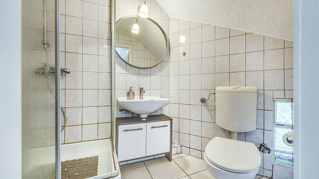 Über das Treppenhaus gelangen Sie auf der Zwischenetage zu einem separaten Gäste-WC.