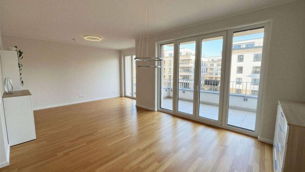 Von der großzügigen Eingangsdiele aus sind sämtliche Räume direkt zugänglich. Das Herzstück der Wohnung bildet der weitläufige, lichtdurchflutete Wohn- und Essbereich mit bodentiefen Fensterflächen. Der vorgelagerte Balkon eröffnet einen schönen Blick in die grüne, parkähnliche Umgebung und lädt zum Entspannen ein. Alle Anschlüsse für die Installation einer Einbauküche nach eigenen Vorstellungen sind bereits vorhanden, sodass sich der Raum individuell gestalten lässt.