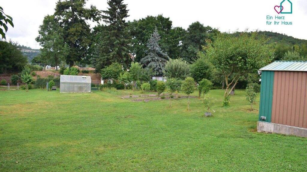 Das Grundstück wird vom jetzigen Eigentümer stets gepflegt. Durch den Garten fließt ein kleiner Bach, der mit Teichpflanzen bepflanzt wurde. Der Garten verfügt über einen eigenen Zugang, außerdem eine Parkfläche von 10mx10m, ein Gewächshaus und 2 Geräteschuppen. Die Rasenpflege erfolgt mit einem Mähroboter, der übernommen werden kann.