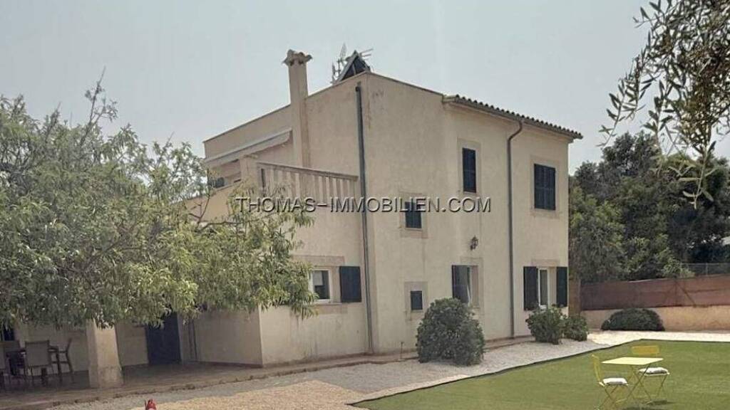 Modernes Haus mit Garten in Sa Rapita-Das Haus in Sa Ràpita ist ebenerdig und verfügt über zwei Schlafzimmer, die sich ein Badezimmer mit Badewanne und Dusche teilen. Die Schlafzimmer haben eine angenehme Größe und jeweils große Einbauschränke. Eines der Schlafzimmer ist mit einem 150 cm breiten Bett ausgestattet, das andere mit zwei Einzelbetten à 90 cm. Der helle, offene Wohnbereich ist durch eine Schiebetür mit der Küche verbunden, sodass diese entweder offen oder abgetrennt genutzt werden kann. Das Haus wurde kürzlich hochwertig renoviert und verfügt in allen Räumen über Klimaanlage, Climalit-Fenster und Parkettboden. Vom Wohnzimmer sowie durch den Garten hat man Zugang zu einer überdachten Terrasse (Porche). Das Haus ist an das städtische Wassernetz angeschlossen und verfügt zusätzlich über eine Zisterne mit 10.000 Litern Fassungsvermögen, die befüllt wird, da der Wasserdruck andernfalls nicht ausreicht. Internetanschluss von Movistar ist vorhanden. Der große Garten ist mit Kunstrasen ausgestattet. Dahinter befinden sich zwei unbebaubare Grundstücke, was einen schönen Weitblick ermöglicht. Von der Straße aus ist das Meer sichtbar. In nur fünf Gehminuten erreicht man die Küste. Ein Aufstellpool sorgt an heißen Tagen für angenehme Erfrischung.