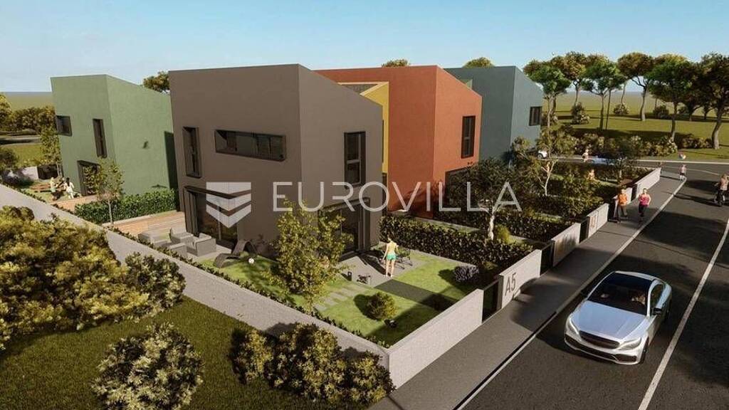 Porec, A5 kuca u nizu 120 m2 s okucnicom. Simpatican rezidencijalni projekt moderne arhitekture. Projekt se sastoji od deset kuca, svaka s vlastitom ogradenom okucnicom, parkirnim mjestom, svim potrebnim sadrzajima za ugodan boravak i zivot. Kuca se sastoji od tri etaze. Podzemna etaza moze biti konoba, ured ili spavaca soba po zelji. Dnevno svjetlo dopire kroz svjetlarnik, te daje poseban ugodaj prostoru. Prizemlje je zamisljeno kao dnevni prostor koji spaja dnevni boravak, blagovaonicu i kuhinju, iz kojih se velikom staklenom stijenom pristupa na terasu i vanjski bazen. Na katu su dvije spavace sobe i jedna kupaonica s galerijama. Mikrolokacija je okruzenje vrhunskih nekretnina poput ove. U naselju je postignut idealan balans izmedu mirne sredine i svih bitnih sadrzaja poput centra grada i morske obale. Siri istarski kontekst pruza brojne mogucnosti uzivanja u prirodi, gastronomiji i kulturi, a povezanost i blizina europskih prijestolnica cini ovo mjesto jos dragocjenijim. Bilo da se radi o odmoru ljeti ili cjelogodisnjem stanovanju, Porec nudi odlicne uvjete za izvanrednu kvalitetu zivota. Za vise informacija stojimo Vam na raspolaganju.... Vise na eurovilla.hr, ID: 929687