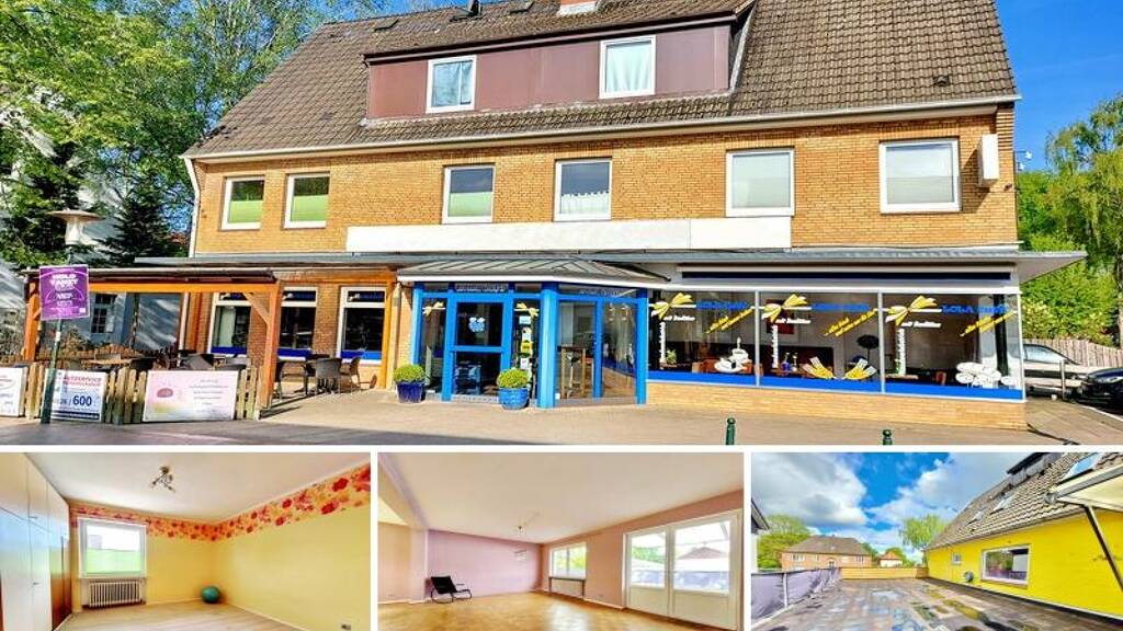 Diese von uns zu vermittelnde Immobilie bietet eine Vielzahl von Möglichkeiten. Zur Zeit wird vom derzeitigen Eigentümer im EG ein bekanntes und sehr erfolgreiches Café mit eigener Backstube betrieben, es ist aber auch vorstellbar dass dieser Bereich für Arztpraxen, eine Bank, ein Restaurant, Büroräume o.ä. genutzt wird. (Nach Beantragung einer Nutzungsänderung könnten hier - nach baulicher Veränderung - auch bis zu drei Wohneinheiten entstehen) In den Obergeschossen befinden sich zwei abgeschlossene Wohnungen. Wohnung 1 im 1. OG verfügt mit ca. 153qm über ein Wohn-/Esszimmer, vier Schlafzimmer, Flur, Küche mit Einbauküche (2012), Wannenbad, Sonnenterrasse (120qm!). Diese Wohnung ist mit Parkett und Laminat ausgestattet. Wohnung 2 im 2.OG verfügt mit ca. 81qm über ein Wohn-/Esszimmer, drei Schlafzimmer, Flur, Küche mit Einbauküchenzeile sowie ein Wannenbad und ein Duschbad. Die Wohnungen wirken hell und freundlich, denn die hohen Fenster lassen viel Tageslicht herein. Die Fenster und Zugangstüren sind alle erneuert bzw. werden gerade erneuert und sind auf aktuellem Stand. Es besteht normaler Renovierungsbedarf. Die Decke der Backstube lässt eine Aufstockung mit einer weiteren Wohneinheit zu. Für das gesamte Objekt liegt eine Teilungserklärung in die beiden Wohneinheiten und die Gewerbeeinheit vor. Grundbücher folgen. Sie erwerben hier eine fortlaufend instand gehaltene Immobilie in Toplage im Zentrum der lebendigen und aufstrebenden Ortschaft Hohenlockstedt. Neugierig geworden? Erfahren Sie weitere Einzelheiten und vereinbaren Sie zeitnah einen Besichtigungstermin!